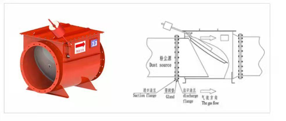 粉塵隔爆閥:與泄爆裝置配合使用,當除塵系統(tǒng)發(fā)生粉塵爆炸時,有效阻斷爆炸沖擊波返回車間,保證車間人員安全。