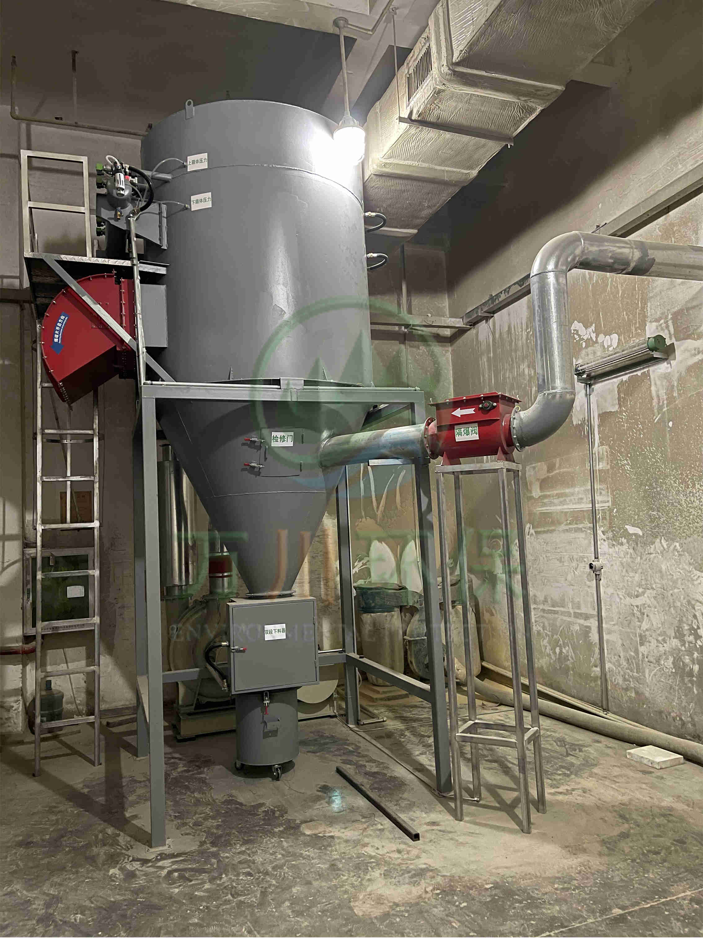 萬川配套一套脈沖布袋除塵器+防靜電布袋+防爆除塵風機+防爆卸料器+無焰泄爆器+隔爆+自動化電控柜系統(tǒng)。