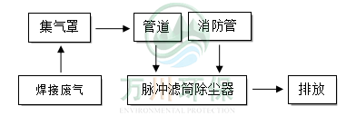 工程師根據現場焊接煙塵性質、粒徑、現場工況等因素考量,故采用脈沖濾筒除塵器作為處理設備