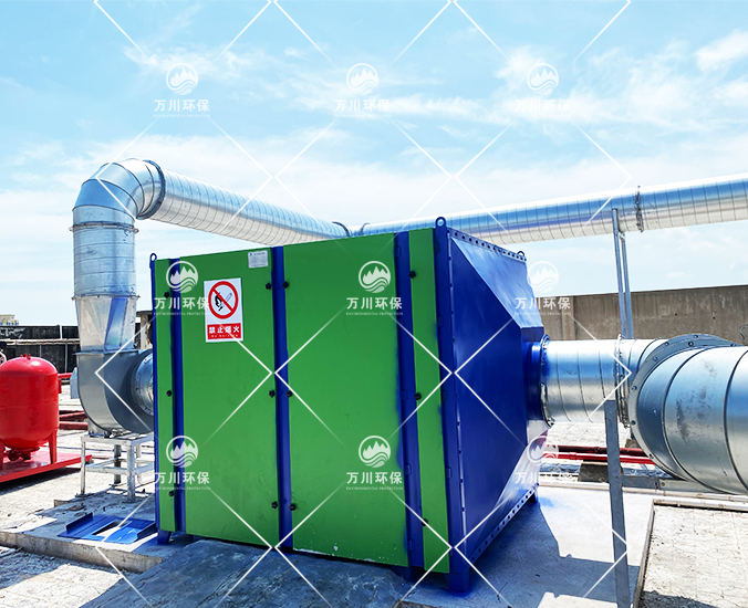 橡膠廢氣中含有一定量的粉塵,所以處理廢氣之前要做預處理,要使用噴淋系統進行清洗才可以進行后續的處理,先把粉塵去除,這樣做才不會影響后續設備的運行。根據廢氣的性質和以往的工程經驗,我們采用了噴淋活性炭吸附一體化設備去處理 。